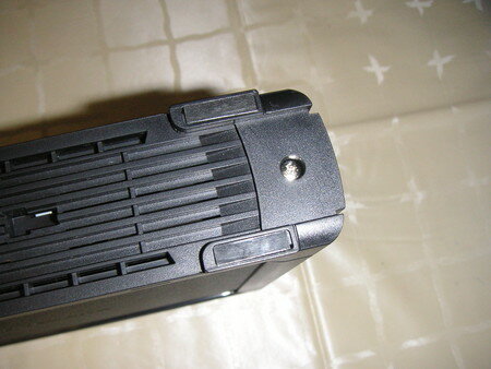 LinkStation本体をひっくり返すとネジがあります。これを外します。