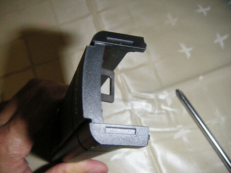 フロントパネルの本体側の爪がひっかかる部分です。下向き斜めになっているのがミソです。