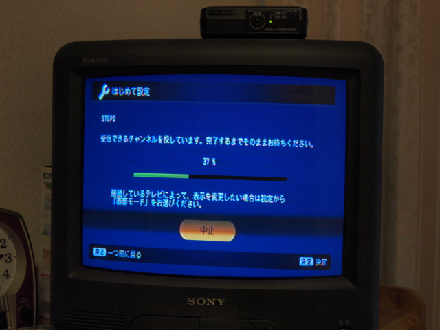 アナログテレビへの取り付けはすぐ完了しました。電源を入れて、決定ボタンを押すだけで初期設定が開始され、受信できたチャンネルを自動登録してくれます。