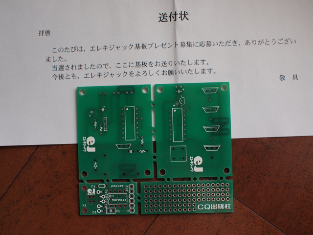 エレキジャックの基板プレゼントにまた当選してしまいました。忘れたころに届いたのでびっくり。