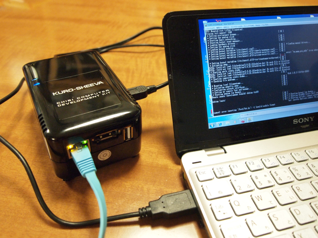 とりあえず、付属のUSBケーブルでVAIO Type P(WIndows7)に接続し、CD-ROMからUSB-シリアルドライバをインストール。シリアルスピードを調整したらコンソール画面が出てきました。
