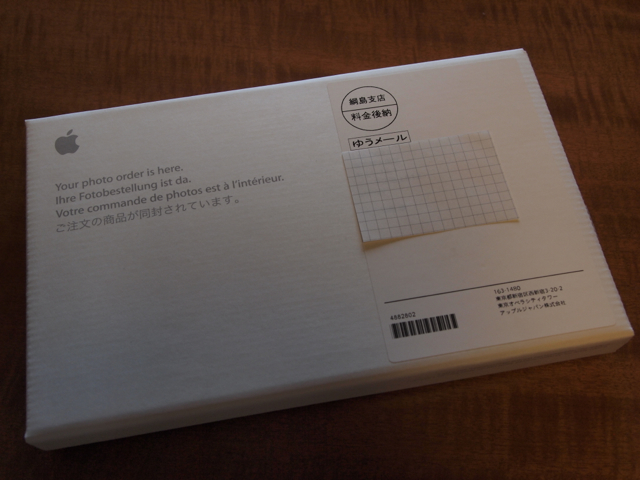 iPhoto ‘09で5月5日に注文して、5月6日に発送完了のメールが届きました。そして今日5月8日にポストに届いていました。こんなに早く到着するとは思っていなかったのでびっくりです。