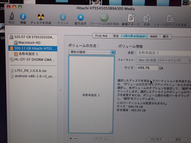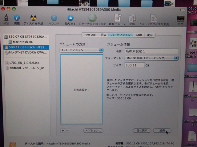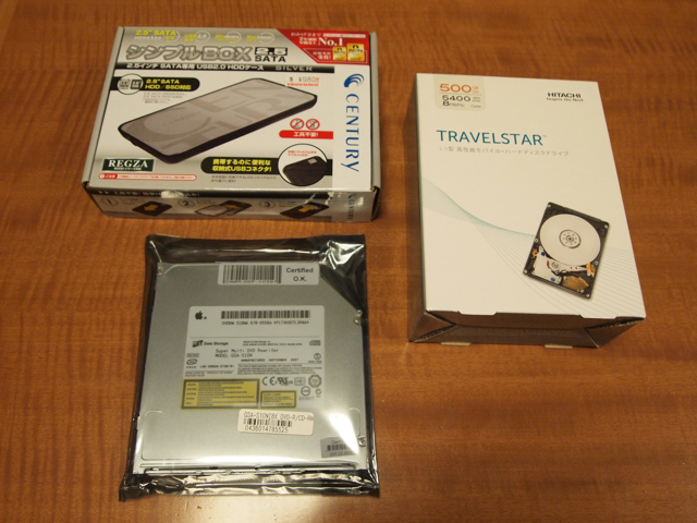 MacBook Pro(15-inch Core 2 Duo 機種ID:MacBookPro2,2)の内蔵DVDドライブが壊れてしまいました。ディスクをいれようとしても何かが引っかかっていて奥に入りません。これは困ったということで、内蔵DVDドライブの交換を行うことにしたのですが、どうせMacBook Proのふたを開けるのであれば、ついでにハードディスクも容量を大きくすることにしました。現在320GBですが、最近では500GBが4000円台ということでお手頃になっているようです。