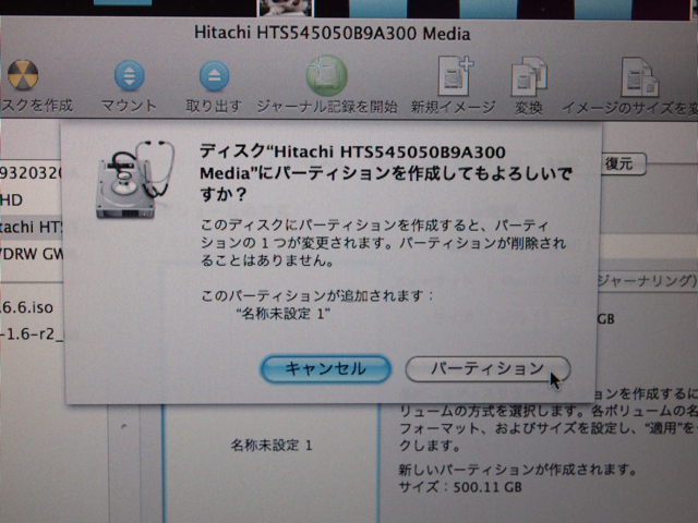 パーティションボタンを押すと、ディスクアクセスが始まります。