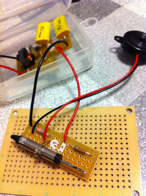 現状だとちょっと音が小さいので、秋月のキットと同様な回路を組んでみようと思います。うまくいったらmbedに接続してtweetすることもできるでしょう。
