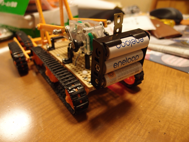 追伸:電池BOXがキャタピラから大きくはみ出していると引っかかるので、縦に取り付け直しました。