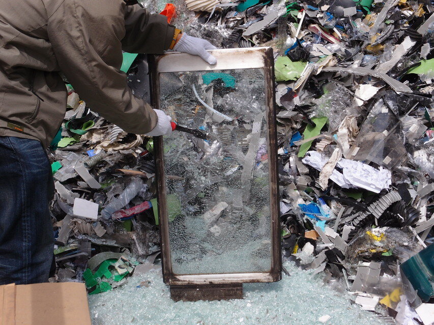 蛍光灯をガンガン投入させていただきました。破砕機の構造や破砕後のガラスの様子やこの後どうなるのかまで詳しく説明いただきました。