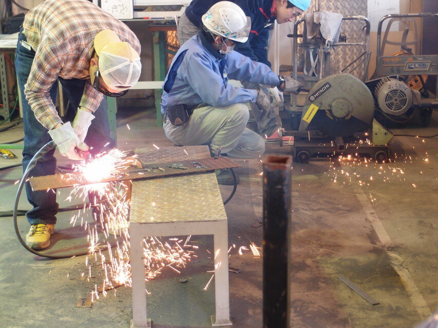 作業しているところを見学していました。金属溶接や切断など楽しそうでした。