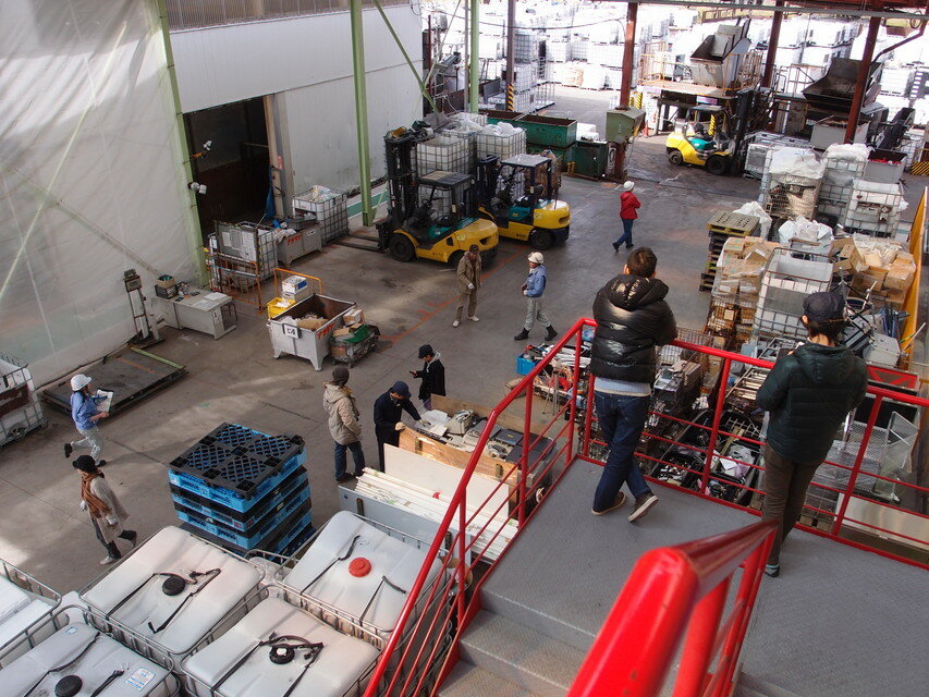 気になるマテリアルもたくさんあります。産業廃棄物として回収されたものがどうなっていくのか知ることができました。
