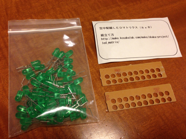 Maker Faire Tokyo 2013で配布されていた @kimio_kosakaさんの空中配線LEDマトリクスキットを組み立ててみました。
