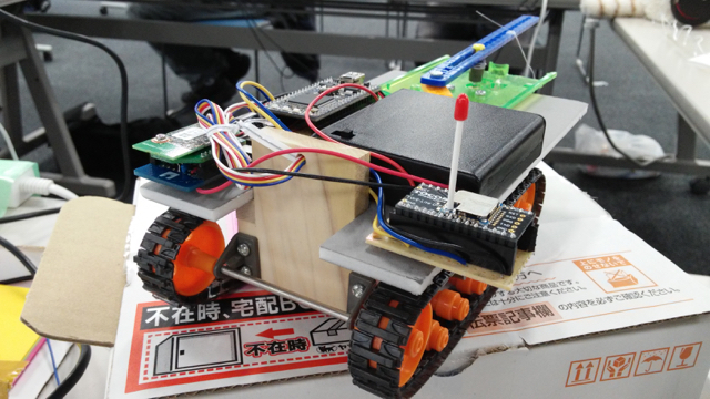 ただ、mbedのところで時間をかけすぎてしまったため、前回大きな課題だった足回りの改良がまったく行えず、電池切れの不安を抱えながらのデモになりました。