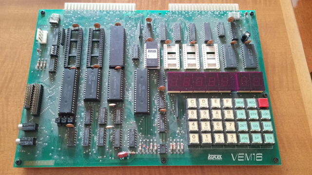 ヤフオクでVEM16という8088トレーニングボードを手にいれました。お値段は2100円。有名どころのTK-80やLkit-16といったトレーニングマイコンはそれなりの価格になりますが、このVEM16は知名度も低く私もあまり知らないものです。でも、CPUは16ビットの8088。昔はIBM-PC/XTを持っていたので8088は懐かしく感じます。