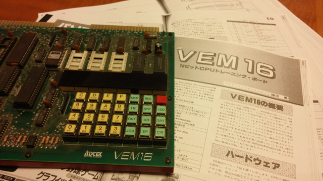 VEM16で検索したところ、 技術情報はありませんでしたが、古本屋のサイトで「VEM16 全回路図」という記事がひっかかりました。その記事が載っている雑誌はあの工学社の月間I/O誌で、1983年5月号とのことです。私も実家にはある程度 のI/O誌を保管していますが、この号は持っていません。