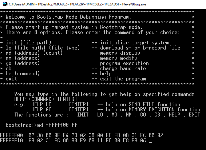 BBUG.EXEはMC68EZ328ADSTOOLS2_0.zipというファイルに含まれています。www.nxp.comのサイトで検索すれば見つかります。