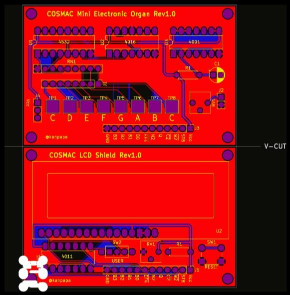 シールド基板は秋月電子のC基板のサイズでガーバーデータを作成しました。もちろんV-CUTで2つの基板を一度に作ります。