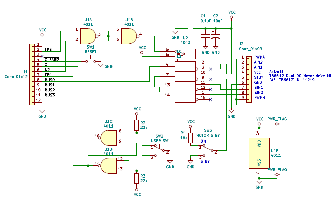 COSMAC CPU基板に接続するモータードライバの回路図は以下のようになります。
