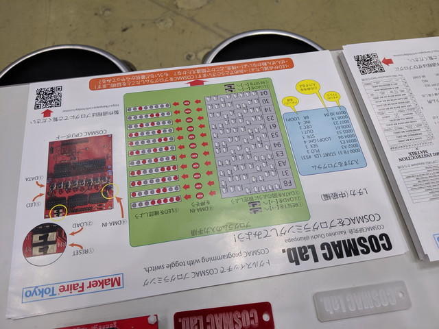 小学生ぐらいの人がトグルスイッチでプログラムを入力しましたが、その入力の速いこと速いこと・・・。お話を聞くと大人の科学の4ビットマイコンで遊んでから、16進数なども理解して、こういうマイコンに興味をもっているとのことで、将来が楽しみです。