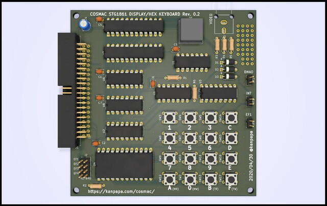 COSMAC MBC STG1861 DISPLAY/HEX KEYBOARD Rev.0.2の基板を発注しました。Rev. 0.1基板で動作は問題なさそうなので、回路図からゲートが漏れていた点を修正しています。また、せっかくなので、空きエリアにユニバーサル領域も付けました。(何かに役立つかも)