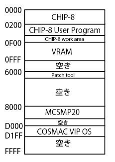 CHIP-8インタプリタを動かす際にはあらかじめCOSMAC VIP OSをRAMにロードしなければなりませんが、それだと不便なのでモニタROMの空きエリアで動かすようにしてみました。