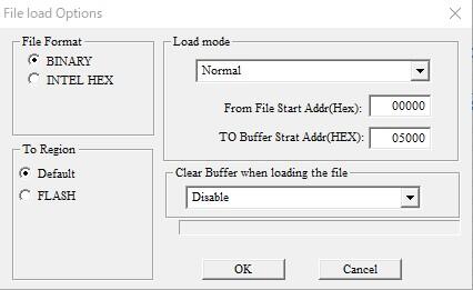 ROMライターで、あらかじめMCSMP20.binを書き込みバッファに読み込んだあとに、パッチをあてたVIP OSを書き込みバッファに読み込みます。オフセットは$5000になりますので、こんな感じの設定でしょうか。