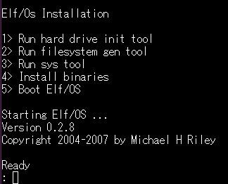 無事Elf/OSが動いたので、これから探検してみようと思います。