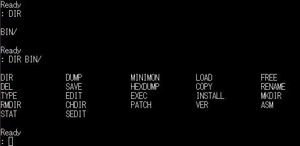 CP/Mに近い感覚です。一通りのファイル操作コマンドやエディタ、アセンブラ、モニタ、ダンプなど開発ツールもあるようです。