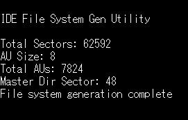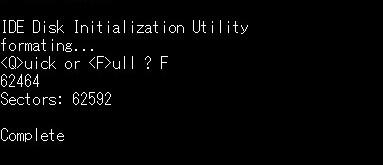 番号にしたがって順番に設定を進めていきます。まずはCFカードの初期化です。初期化しているセクタ番号がカウントアップしていきます。少し時間がかかります。