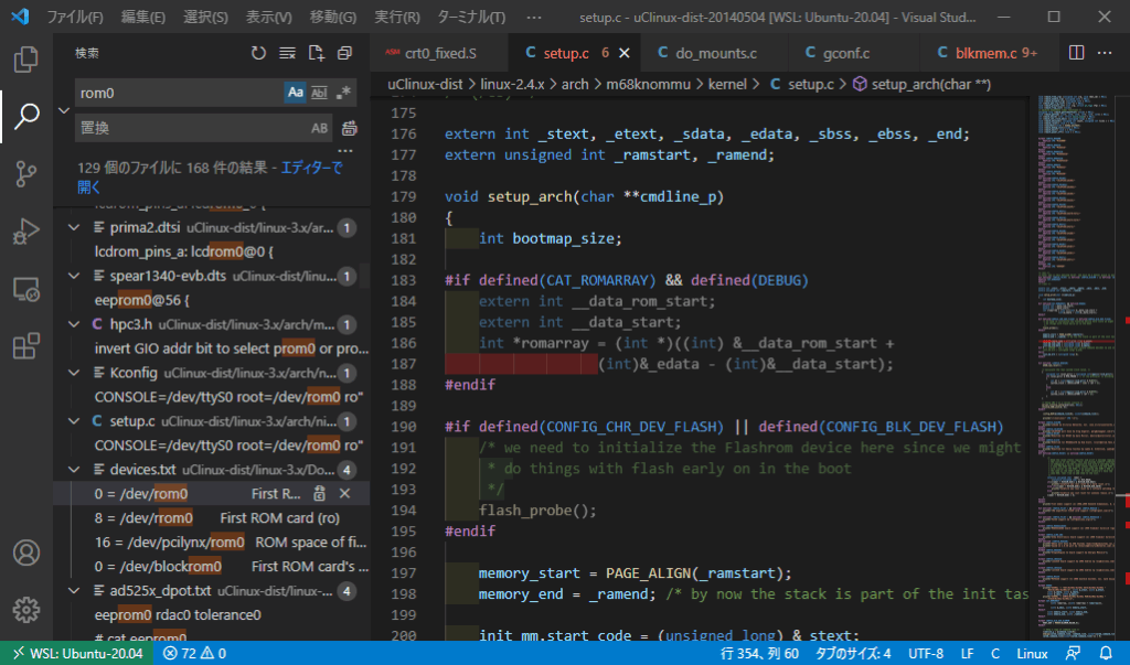 これでsetup_arch()は終わりです。romfsに関連した部分が見つかったのは収穫です。