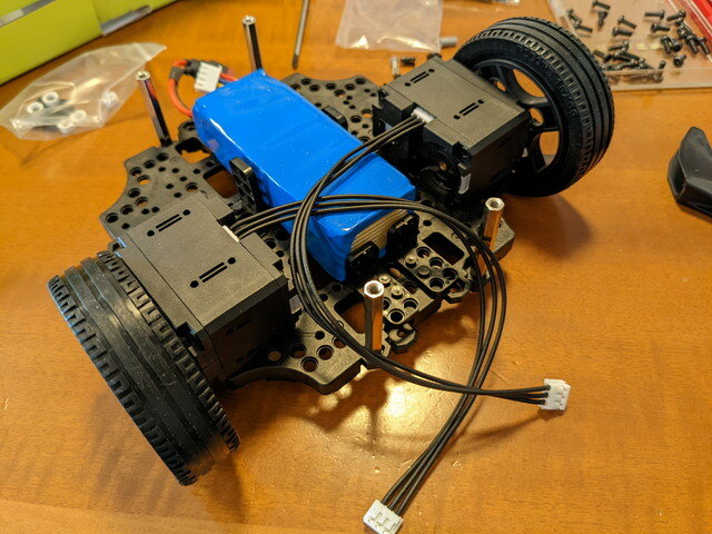 2nd LayerにOpenCRボードを取り付けたあとに、1st Layerと2nd Layerを合体しOpenCRボードにバッテリーとモーターを接続します。