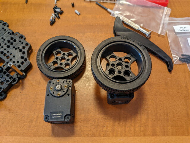 次にタイヤをホイールに取り付けて、モーターに固定します。こんな立派なモーターは使ったことがありません。