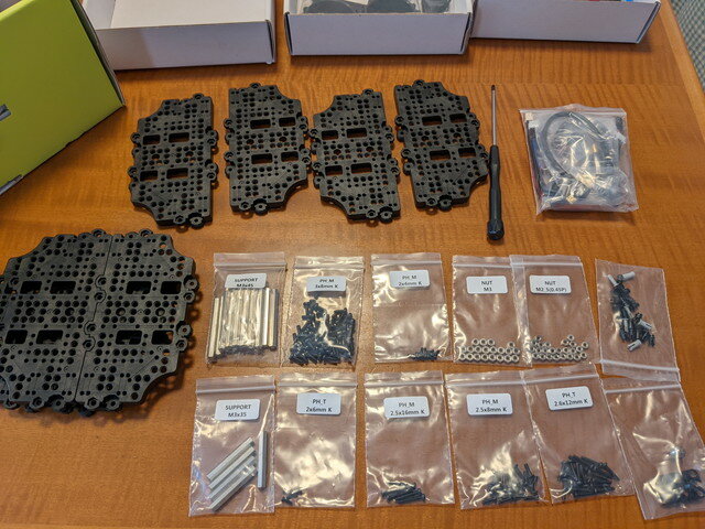 まずはベースとなるプレートを4枚作ります。大量のネジがあるので間違えないように注意します。