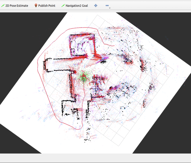 SLAMで作成したmapをつかってナビゲーションを行ってみました。これもうまく動きます。ROS1にくらべて精度が良くなっているように思えます。