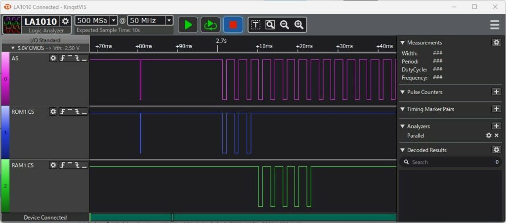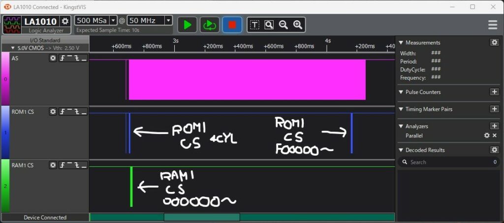 リセット直後を拡大してみると4サイクル以降のアクセスでRAMのCSがLOWになっています。