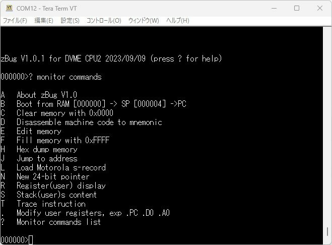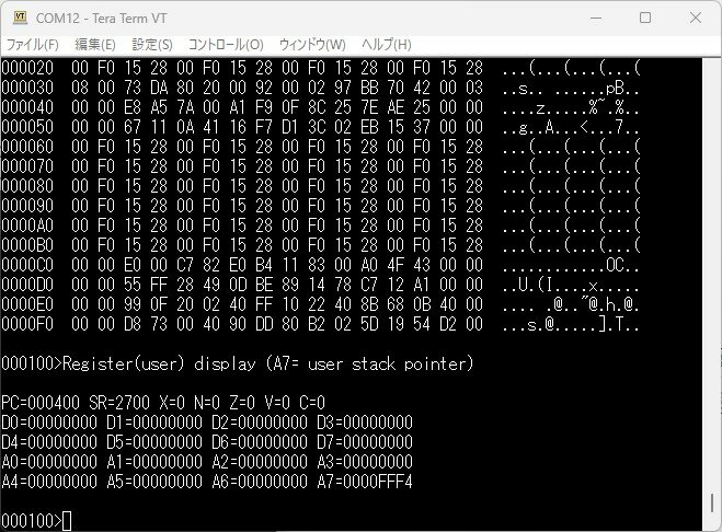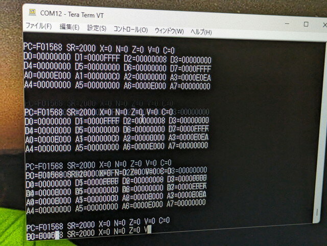 一通りのモニタコマンドを確認しましたが問題なく動作しているようです。割り込みが常にかかっている問題は今後このモニタを使って調査していきます。