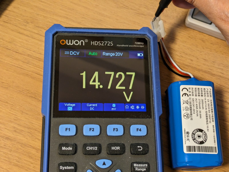 まずは電源電圧を確認したところ正常値を示しました。ほぼ満充電の状態のようです。