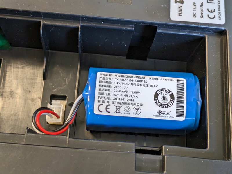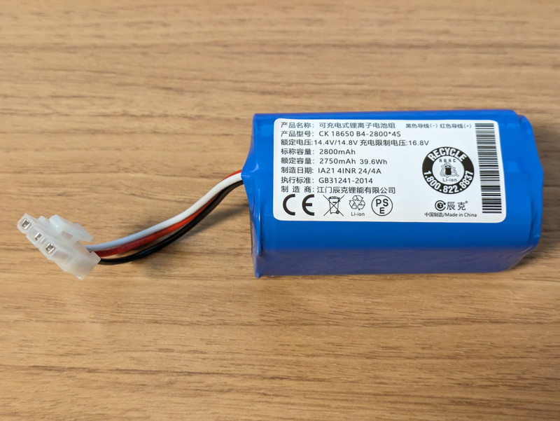 到着したバッテリーです。ラベルに記載されている定格はkobukiのドキュメントにある仕様とほぼ同じです。PSEマークも表示されていました。