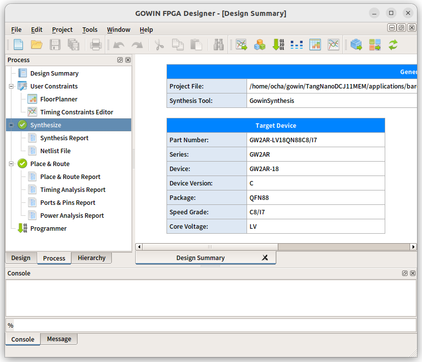 その後、左側のProcessタブを選び、Synthesizeを右クリックしてRerunし、さらにPlace&Routeを右クリックしてRerunを行うだけです。