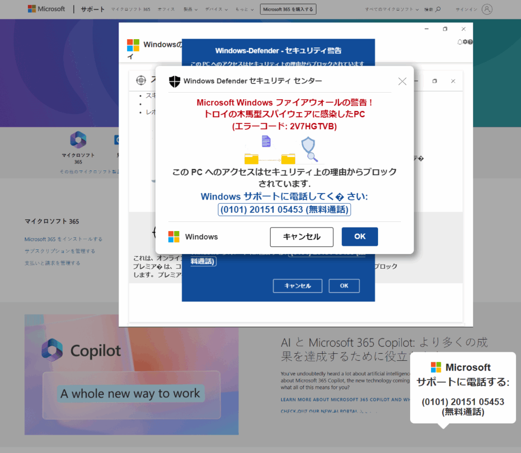 サポート詐欺サイトに遷移するパターンも