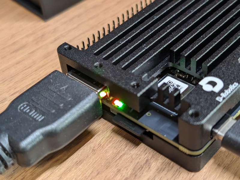CPU側から見たところです。HDMIは標準コネクタで、USB-Cは電源用です。カメラコネクタの横の3ピンはデバック用のUARTです。