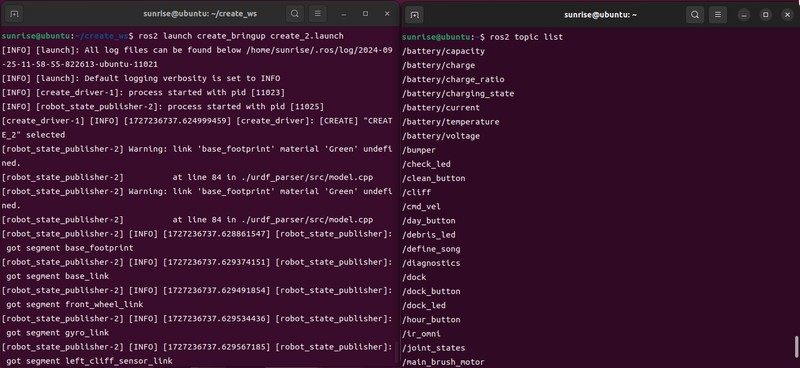 ros2 launch create_bringup create_2.launch
