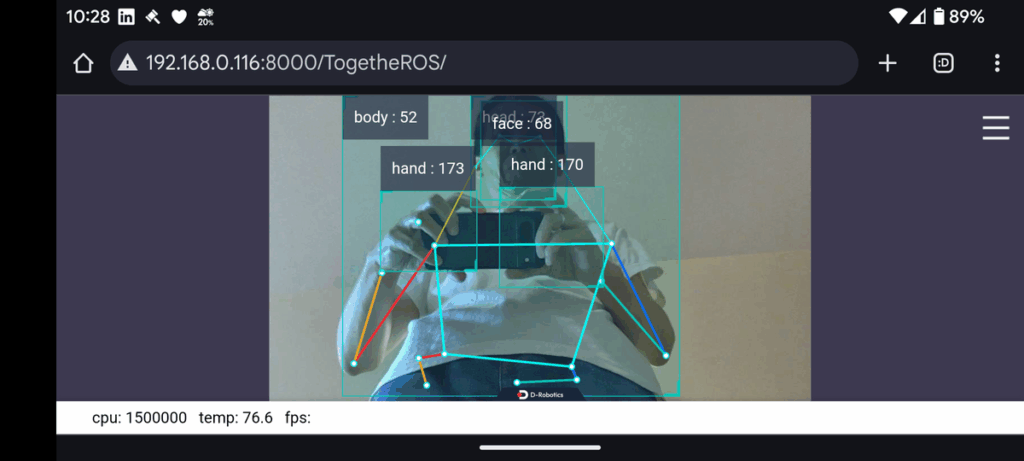 カメラモジュールでどのように物体が認識されているかは、RDK X3の8000ポートにブラウザでアクセスすることでリアルタイム表示されます。ロボット開発者が必要とする機能が実装されていて好印象です。