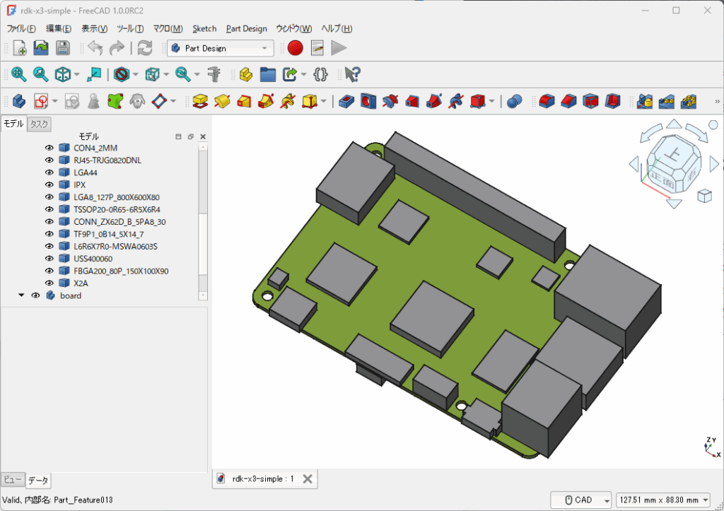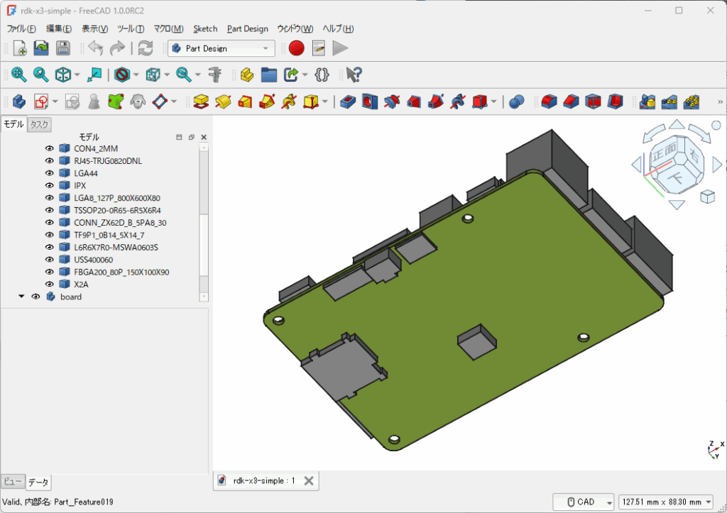FreeCADで作成中のRDK X3です。表面は大きなパーツ以外は削除しました。