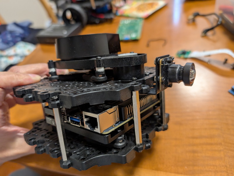 このようにTurtleBot3は柔軟性があるので良いですね。取り付け位置の微調整も容易になるようにうまく設計されています。
