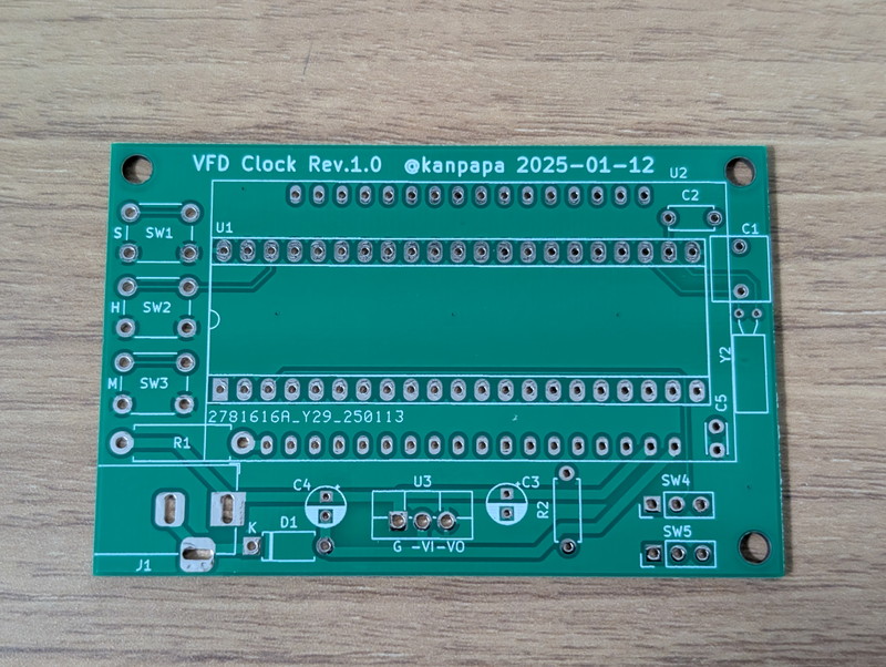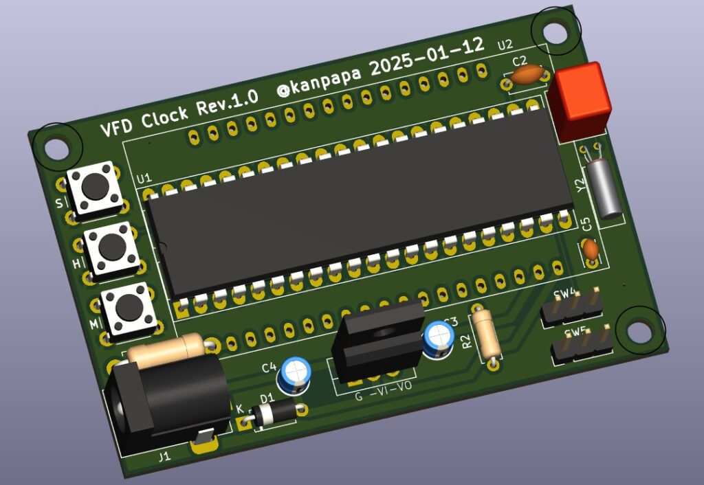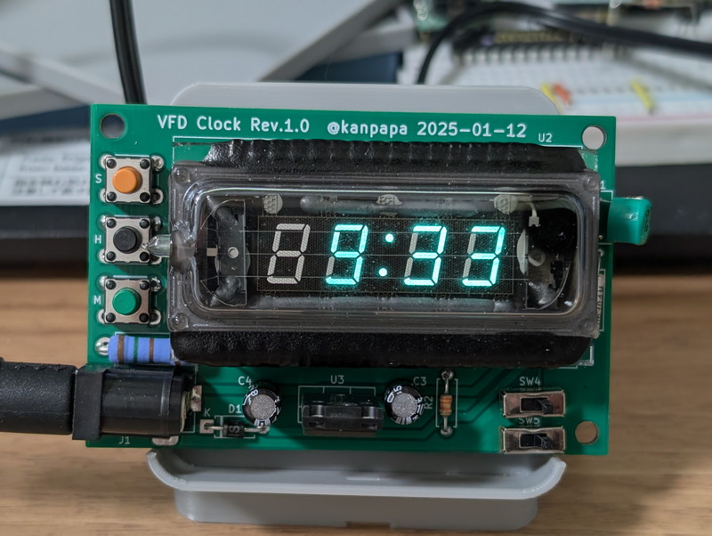 機能はシンプルですが、コンパクトなVFD時計ができました。この基板のKiCadデータは既知の不具合を修正したのちにGitHubで公開予定です。もし、このVFD時計のパーツを持っているかたがいればぜひ動かしてみてください。VFDの輝きはインテリアとして最高です。