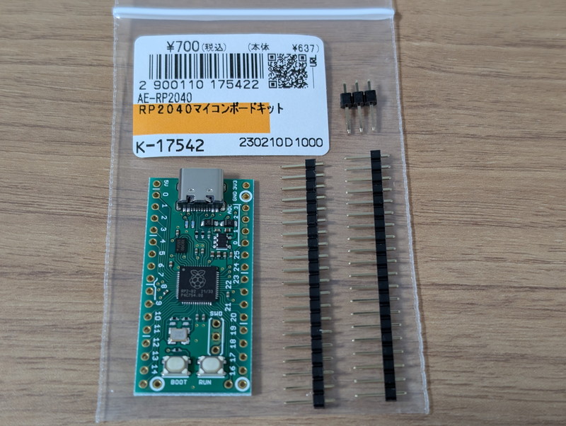 買ったまま積み基板となっていた秋月電子のRP2040マイコンボードキットがでてきました。