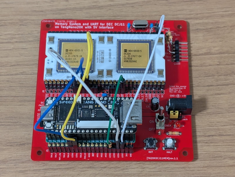 再びジャンパー線を接続しTangNanoDCJ11MEM Rev.2のハードウェアが完成しました。