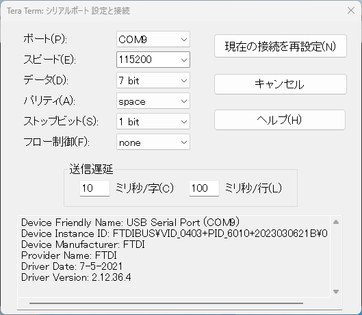 コンソールはTangNano 20KのUSBシリアルを使用します。Teratermでは以下の設定にします。