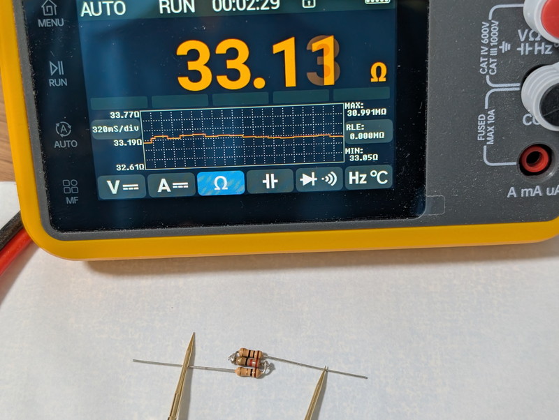 まずはハードウェアの修正です。私の場合は手元に33Ωの抵抗が無かったので手持ちの1Ω+10Ω+22Ωを接続して33Ωにしました。