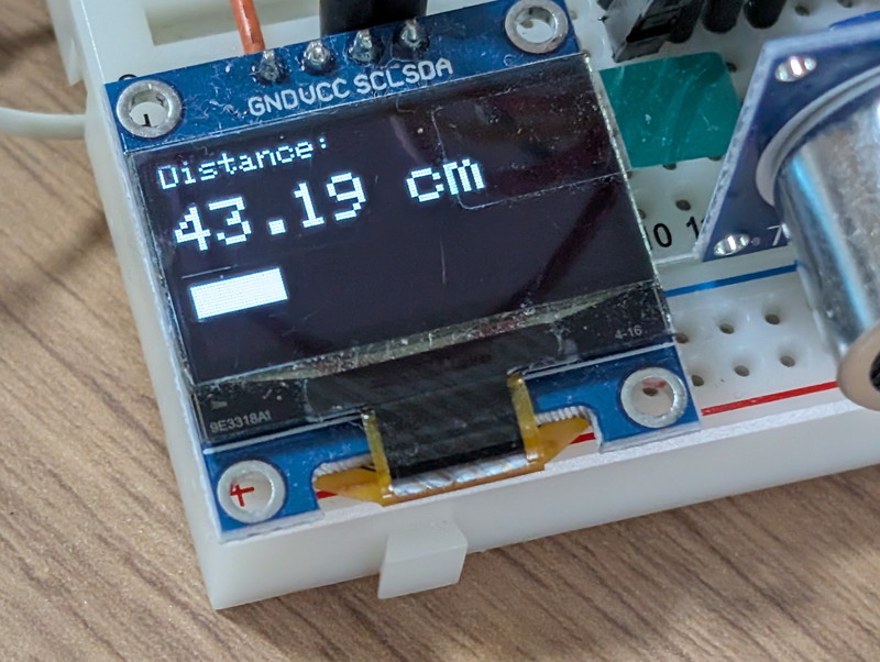 これに従って実装していきます。なお、参加者からOLEDで距離を棒グラフで表示したプログラムを提供いただきました。GFXのライブラリを活用しているものです。このプログラムもミニカー本体のプログラムに組み込むことで、OLEDの表示がリッチになりました。