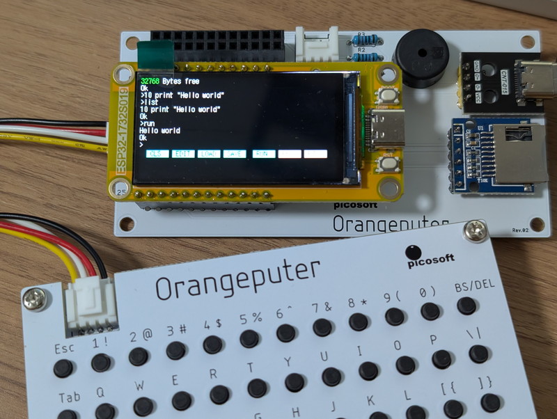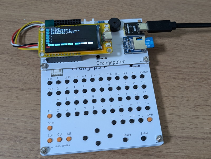 ピコソフトさんからOrangeputerという開発中のESP32ベースの液晶付きマイコンボード+I2Cフルキーボードのキットを試用させていただく機会をいただきましたので、早速組み立ててみました。